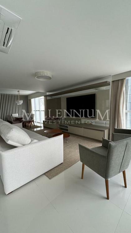 Apartamento no Edifíco Ibiza Towers em Balneário Camboriú com 237m² privativos, 04 suítes sendo uma máster com hidromassagem e closet, amplo living, sala de estar, sala de jantar, espaço gourmet, cozinha com churrasqueira, área de serviço, lavabo, dependência e 04 vagas de garagem.
