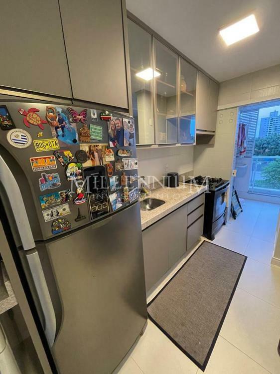 A sacada possui uma churrasqueira, ideal para reunir amigos e família em momentos de lazer. O apartamento oferece um estilo de vida agradável, com uma vaga dupla de garagem, garantindo mais praticidade para quem possui dois veículos.