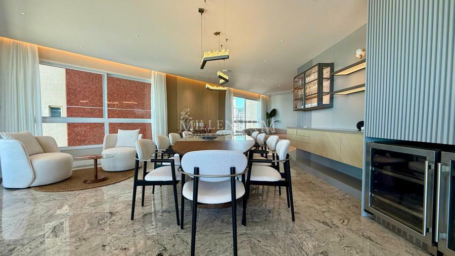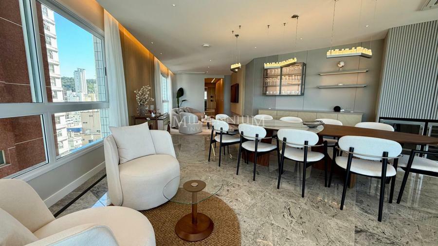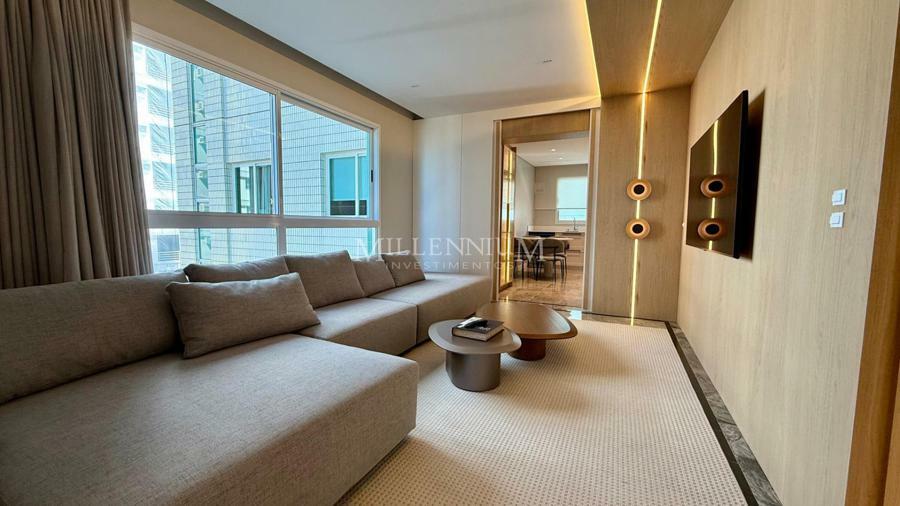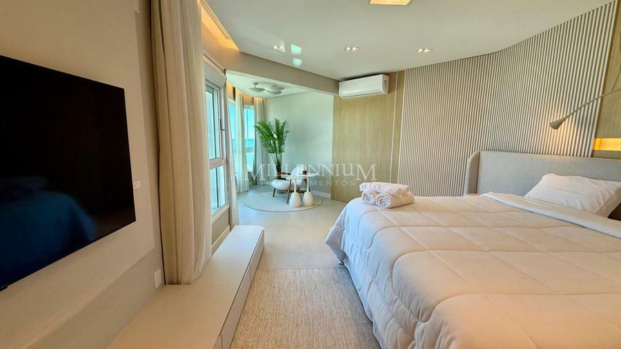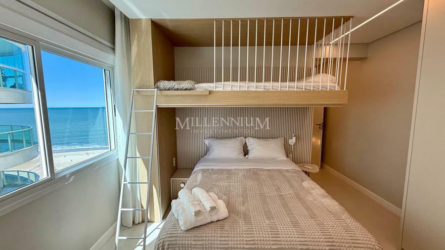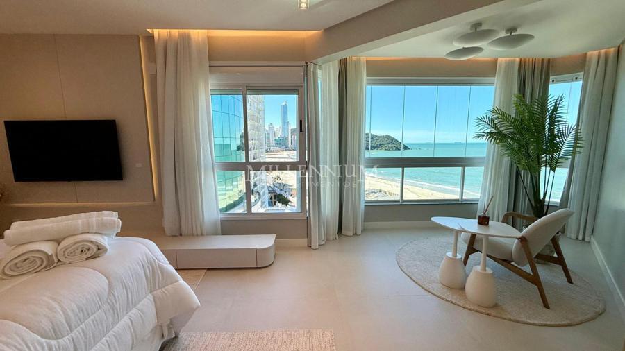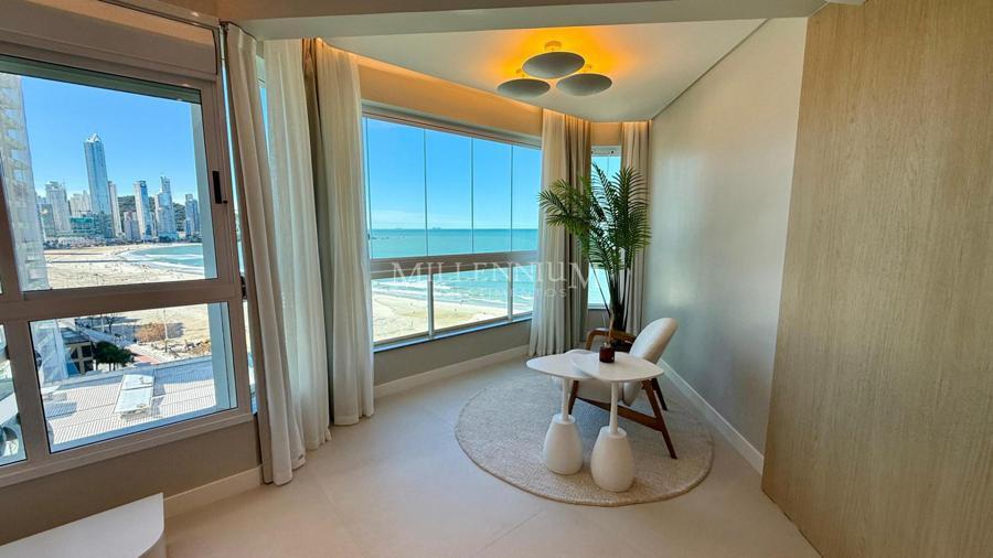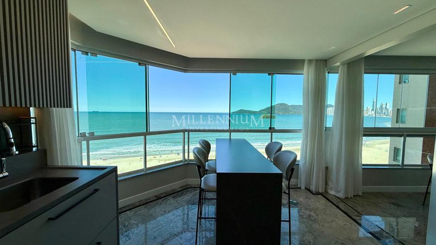 Apartamento à venda frente mar no Edifício Royal Palace, em Balneário Camboriú. São 236 m² privativos, com 3 suítes mais dependência completa, living integrado com espaço gourmet, totalmente mobiliado, decorado e equipado. O imóvel conta ainda com 3 vagas de garagem e a exclusividade de 1 apartamento por andar.