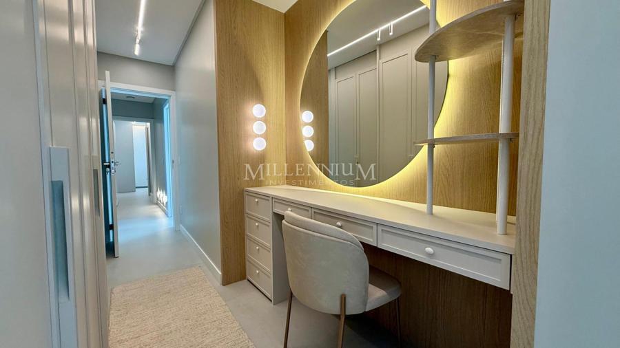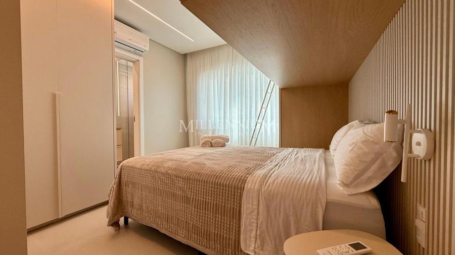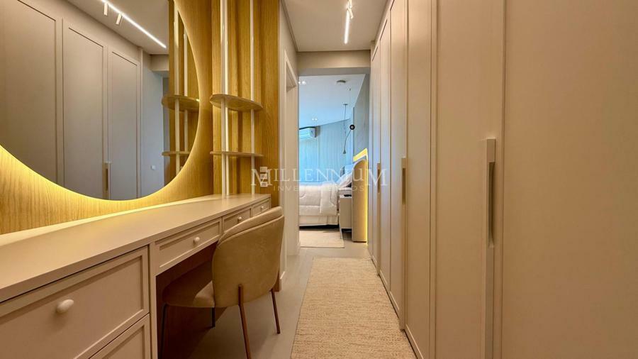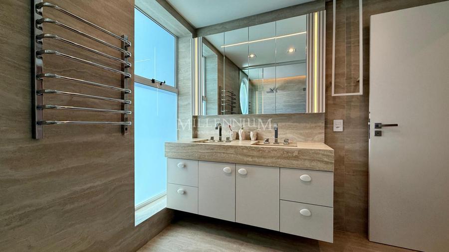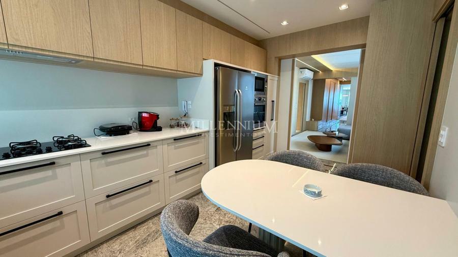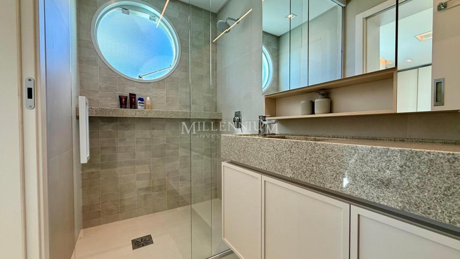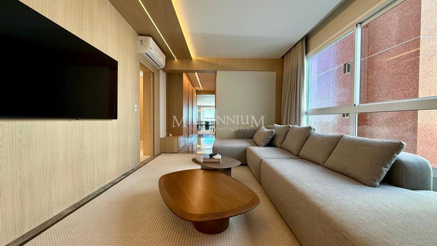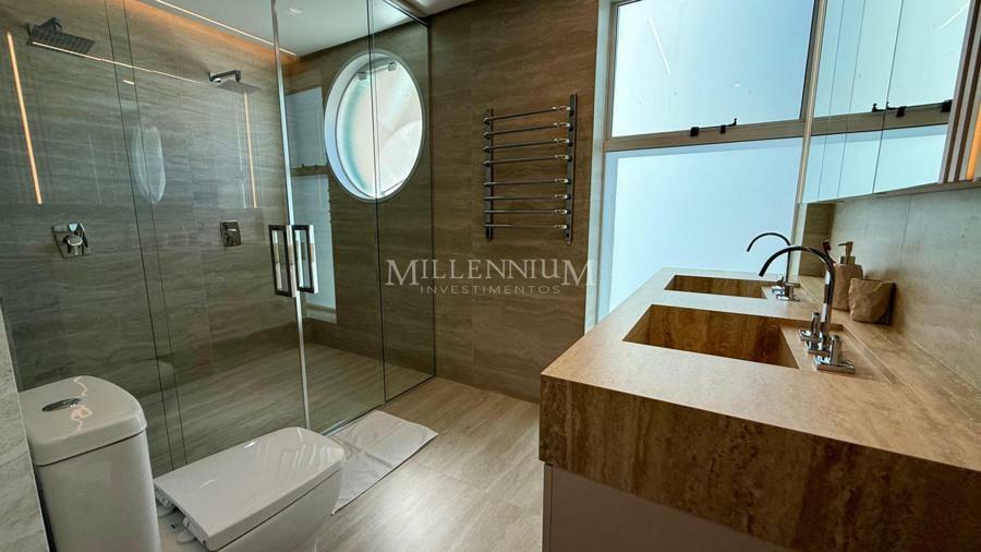 Apartamento à venda frente mar no Edifício Royal Palace, em Balneário Camboriú. São 236 m² privativos, com 3 suítes mais dependência completa, living integrado com espaço gourmet, totalmente mobiliado, decorado e equipado. O imóvel conta ainda com 3 vagas de garagem e a exclusividade de 1 apartamento por andar.