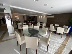 Apartamento no Edifício Cosmos em Balneário Camboriú com 240m² privativos, 3 Suítes (suíte principal com banheira), lavabo social, living integrado com sala de estar, cozinha, sala de jantar separada, sacada com churrasqueira à carvão, área de serviço com dependência de empregada e 02 vagas de garagem.