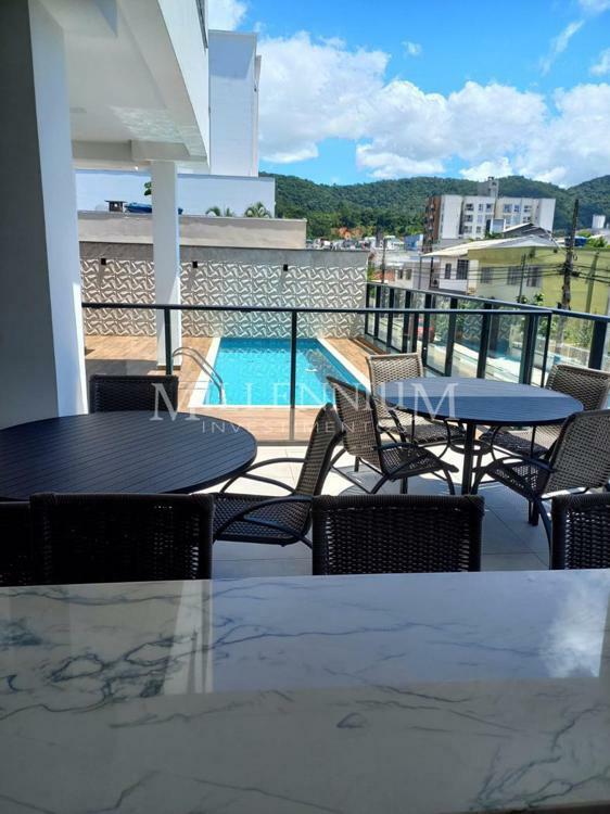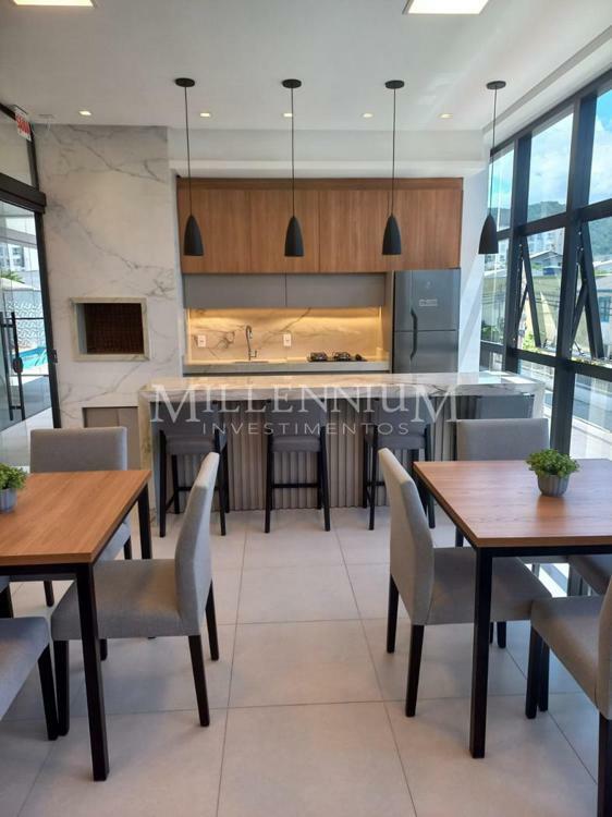 Apartamento no Edifício NF Toscana em Balneário Camboriú com 76m² privativos, 01 suíte + 02 dormitórios, banheiro social, living integrado com sala de estar e sala de jantar, cozinha, churrasqueira a carvão, área de serviço e 02 vagas de garagem.