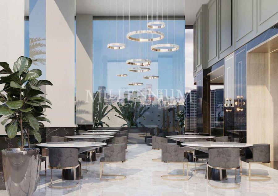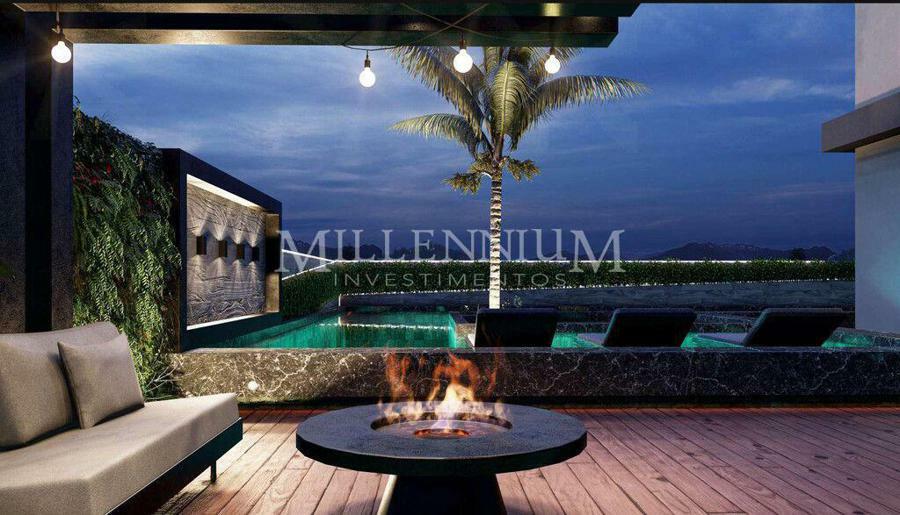 -> Empreendimento Interfone Entrada p/ banhistas e box de praia Hall de entrada decorado e mobiliado Playground Piscina Elevador Salão de festas Solarium Espaço gourmet Sala de jogos Brinquedoteca Academia -> Unidade Hidrômetro Individual Gás Individual Living Lavabo Interfone Sala de jantar Infraestrutura para água quente Porcelanato Acabamento em gesso Espera para split Área de Serviço Sala de Estar Internet CozinhaItens adicionais Quadra Poliesportiva 3 Suites 3 Vagas de garagem