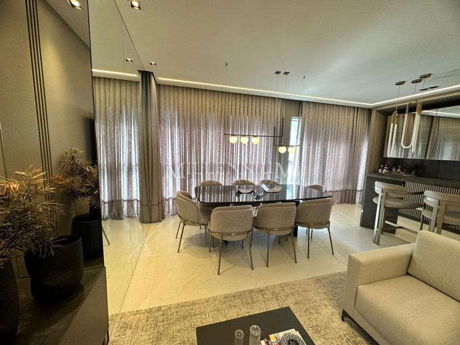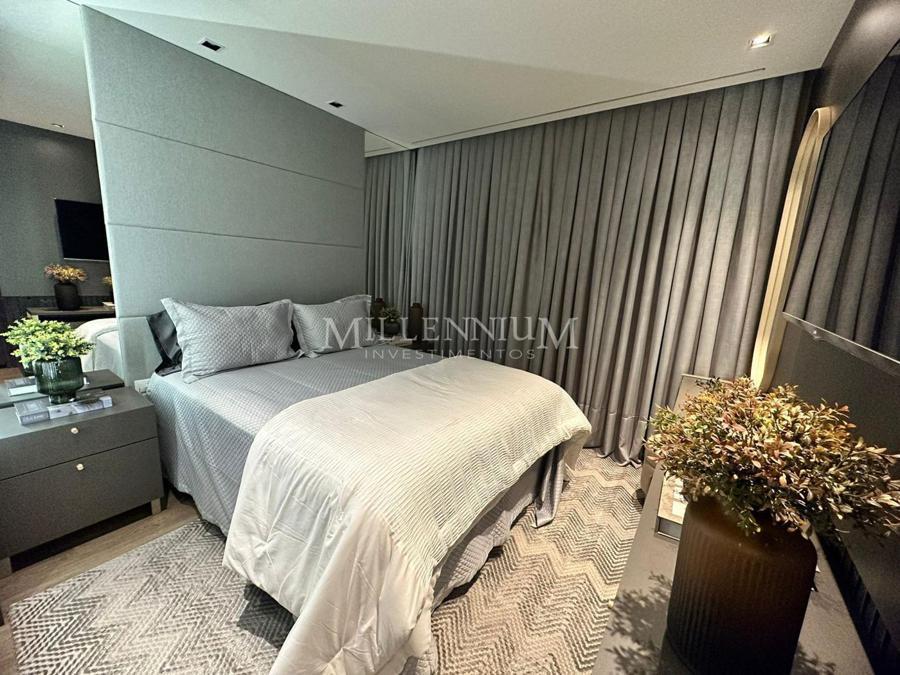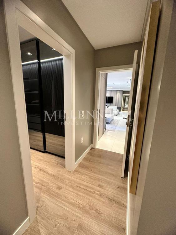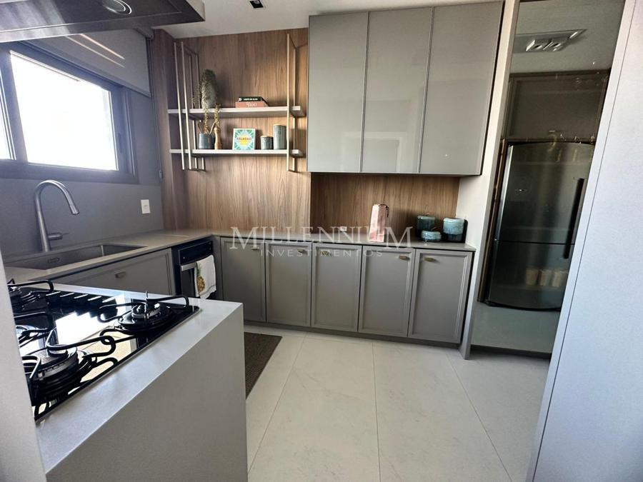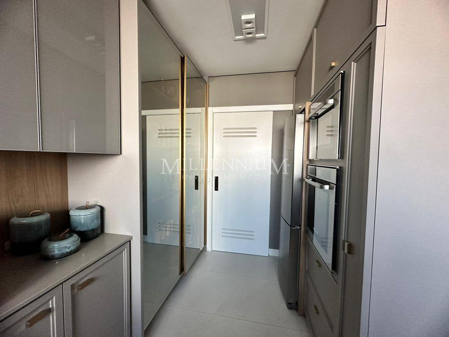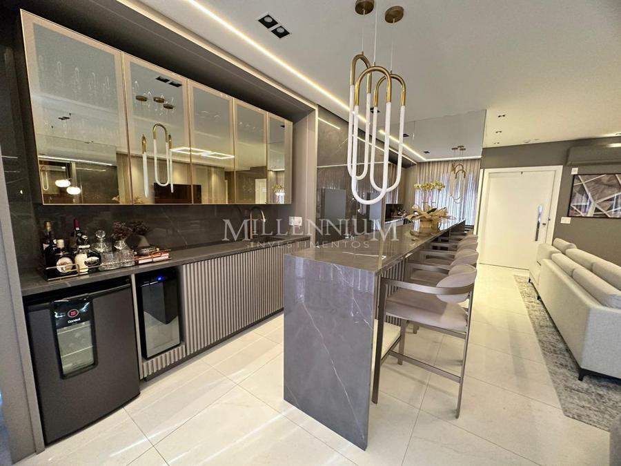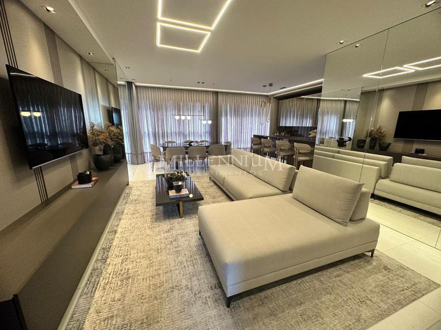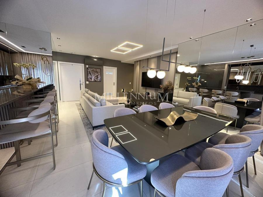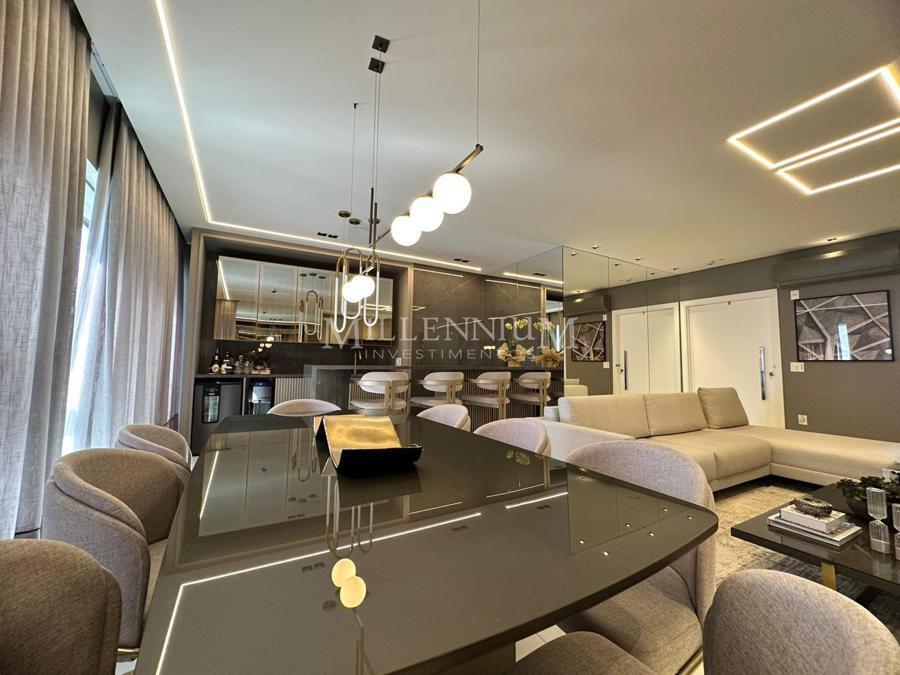 Apartamento à venda no Edifício Royal Tower Residence em Balneário Camboriú. Possui 165?m² de área privativa, 4 suítes, living integrado com espaço gourmet, sala de estar e jantar, cozinha, área técnica e lavabo. Está totalmente mobiliado, decorado e equipado, e conta com 3 vagas de garagem.