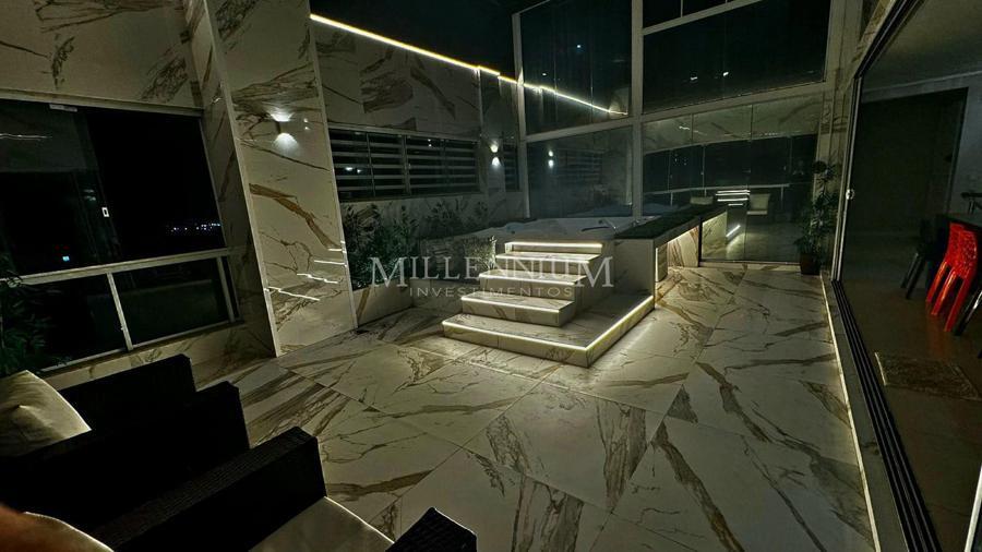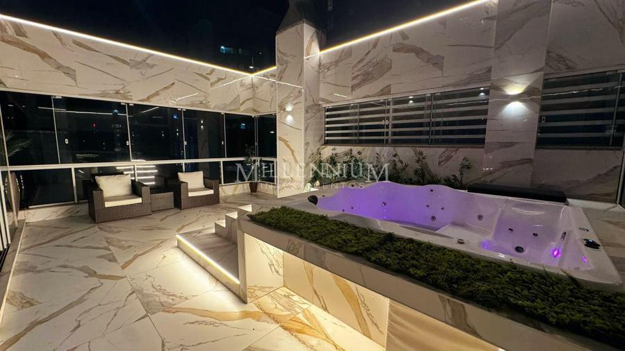 Cobertura Exclusiva no Edifício Portland, Centro de Balneário Camboriú com 04 suítes, sendo 01 master com jacuzzi e área de banho com dois chuveiros, 370 m² privativos | 460 m² total, 100% mobiliada, Churrasqueira a carvão, 6 banheiros, Jacuzzi externa para até 8 pessoas e 04 vagas de garagem amplas.