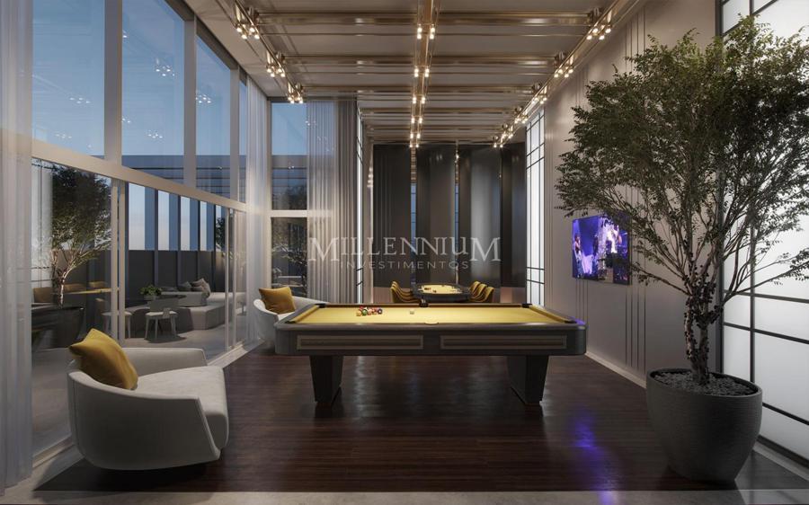 1 Apartamento por andar4 à 6 SuítesAmbientes amplos totalmente integradosEndless ViewTodas as fachadas revestidas em pele de vidroAbertura total do living com guarda corpo estruturadoChurrasqueira a carvãoEntregue com infraestrutura completaPiso aquecido no banheiro das suítes másterIsolamento acústico entre pavimentos, paredes, portas e janelasInfraestrutura para recarga veicularSistema de fachada ventiladaENTRE EM CONTATO