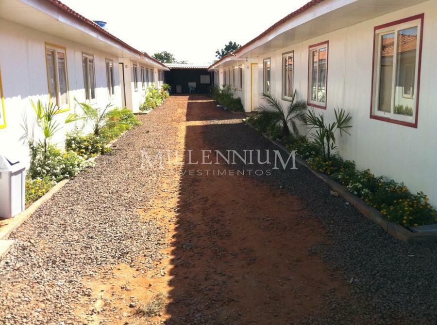 O CONJUNTO RESIDENCIAL POSSUI 10 RESIDENCIAS COM APROXIMADAMENTE 48 METROS QUADRADOS, 2 DORMITORIOS, SALA/COZINHA E BANHEIRO, SEMI MOBILIADAS. CONSTRUCAO EM CONCRETO REVESTIDO INTERNAMENTE E EXTERNAMENTE EM REVESTIMENTO TERMO-ACUSTICO EM PVC. AREA DE LAZER COM CHURRASQUEIRA.