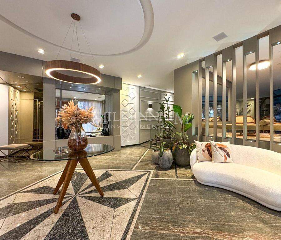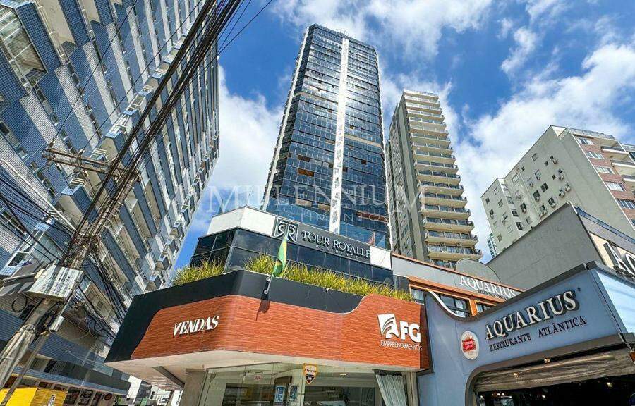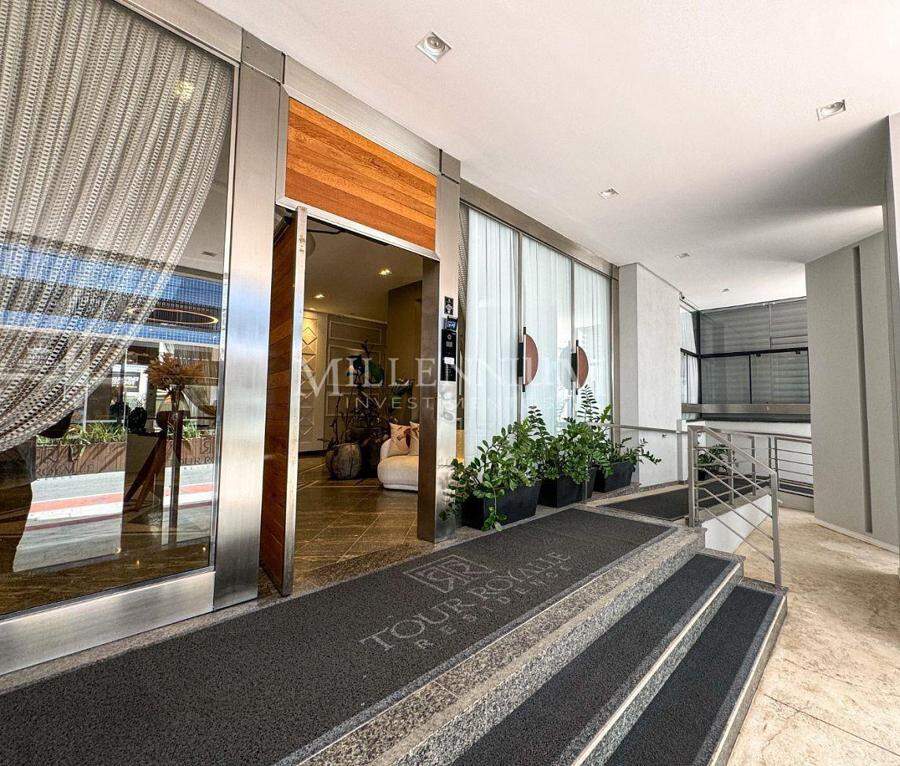Apartamento Diferenciado no Edifício Tour Royalle em Balneário Camboriú com 347m² privativos, 01 suíte + 02 dormitórios, banheiro social, living integrado com sala de estar e sala de jantar, cozinha, sacada com vista mar e churrasqueira à carvão, terraço, dependência com banheiro, área de serviço e 02 vagas de garagem.